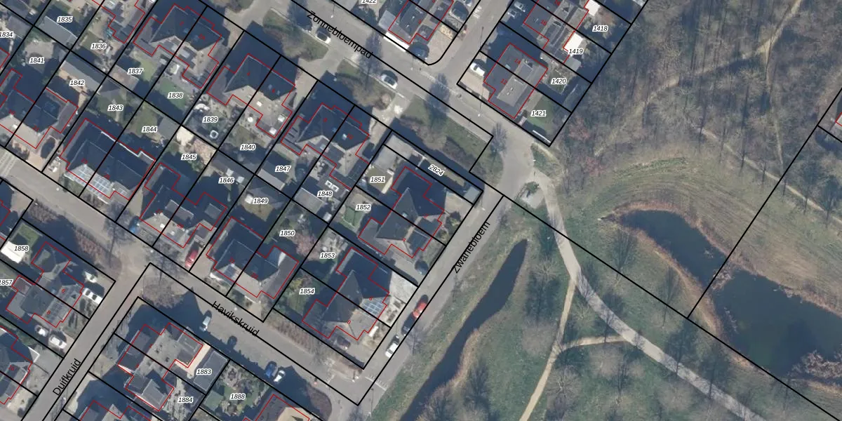 Het perceel waarop Zwanebloem 2 staat heeft een oppervlakte van 306 m². Dit is een groot perceel. De perceeloppervlakte wordt geregistreerd door het Kadaster. Gedetailleerde informatie over de maten van dit perceel kunt u vinden in het rapport Kadastrale kaart met maatvoering van Zwanebloem 2.