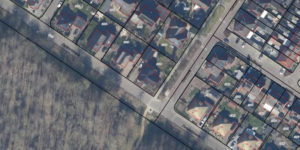 Het perceel waarop Zwanebloem 74 staat heeft een oppervlakte van 594 m². Dit is een groot perceel. De perceeloppervlakte wordt geregistreerd door het Kadaster. Gedetailleerde informatie over de maten van dit perceel kunt u vinden in het rapport Kadastrale kaart met maatvoering van Zwanebloem 74.