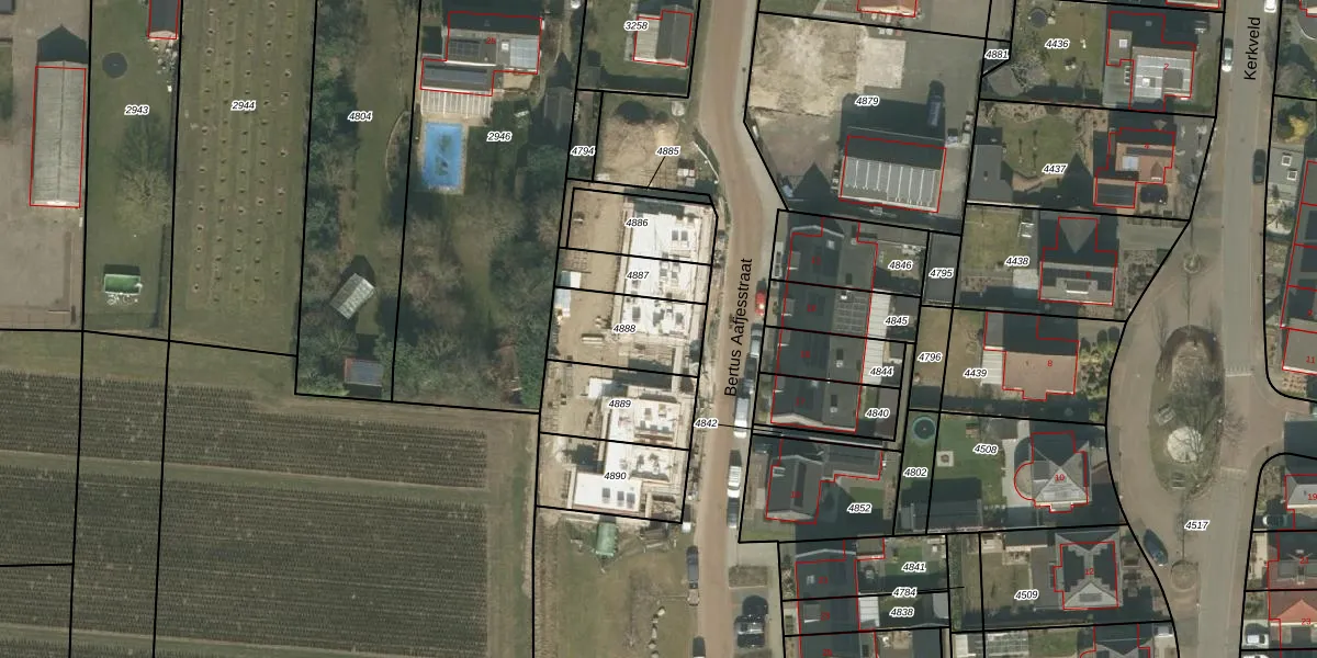 Bertus Aafjesstraat 16 is gelegen op kadastraal perceel MLO02B4888. Deze kadastrale aanduiding is uniek en wordt gebruikt door het Kadaster om eigendomsrechten en andere zakelijke rechten vast te leggen. Het perceel maakt onderdeel uit van de kadastrale gemeente Meerlo.