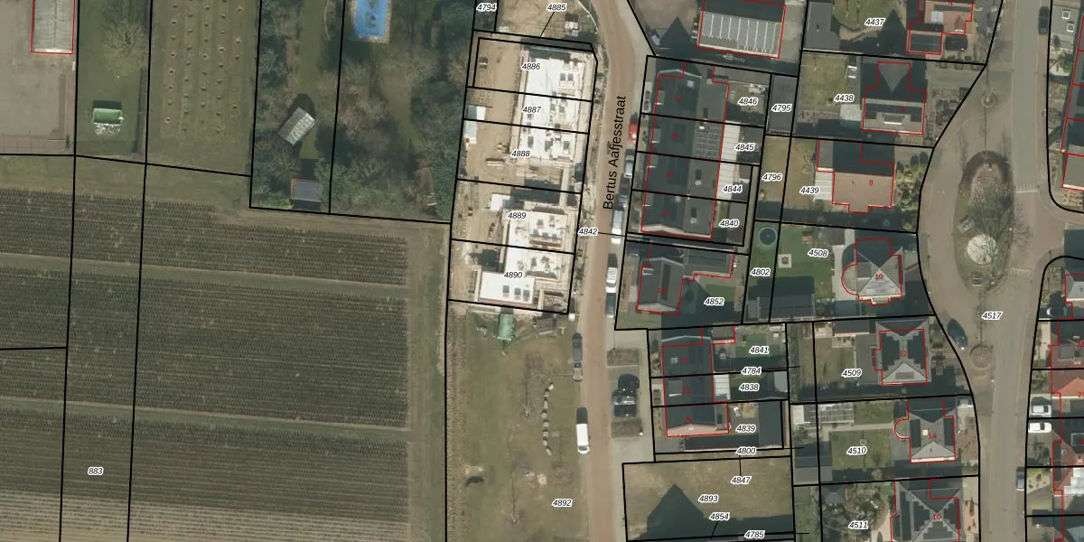 Bertus Aafjesstraat 20 is gelegen op kadastraal perceel MLO02B4890. Deze kadastrale aanduiding is uniek en wordt gebruikt door het Kadaster om eigendomsrechten en andere zakelijke rechten vast te leggen. Het perceel maakt onderdeel uit van de kadastrale gemeente Meerlo.