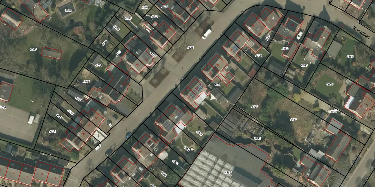 Kanakker 24 is gelegen op kadastraal perceel MLO02B4710. Deze kadastrale aanduiding is uniek en wordt gebruikt door het Kadaster om eigendomsrechten en andere zakelijke rechten vast te leggen. Het perceel maakt onderdeel uit van de kadastrale gemeente Meerlo.