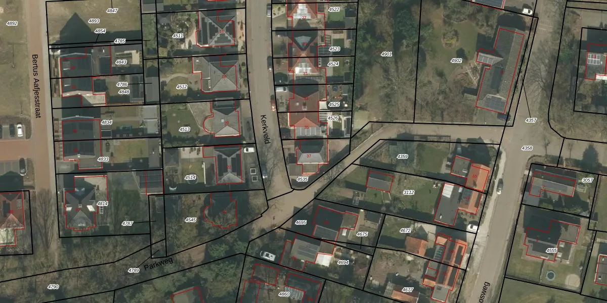 Kerkveld 37 is gelegen op kadastraal perceel MLO02B4535. Deze kadastrale aanduiding is uniek en wordt gebruikt door het Kadaster om eigendomsrechten en andere zakelijke rechten vast te leggen. Het perceel maakt onderdeel uit van de kadastrale gemeente Meerlo.