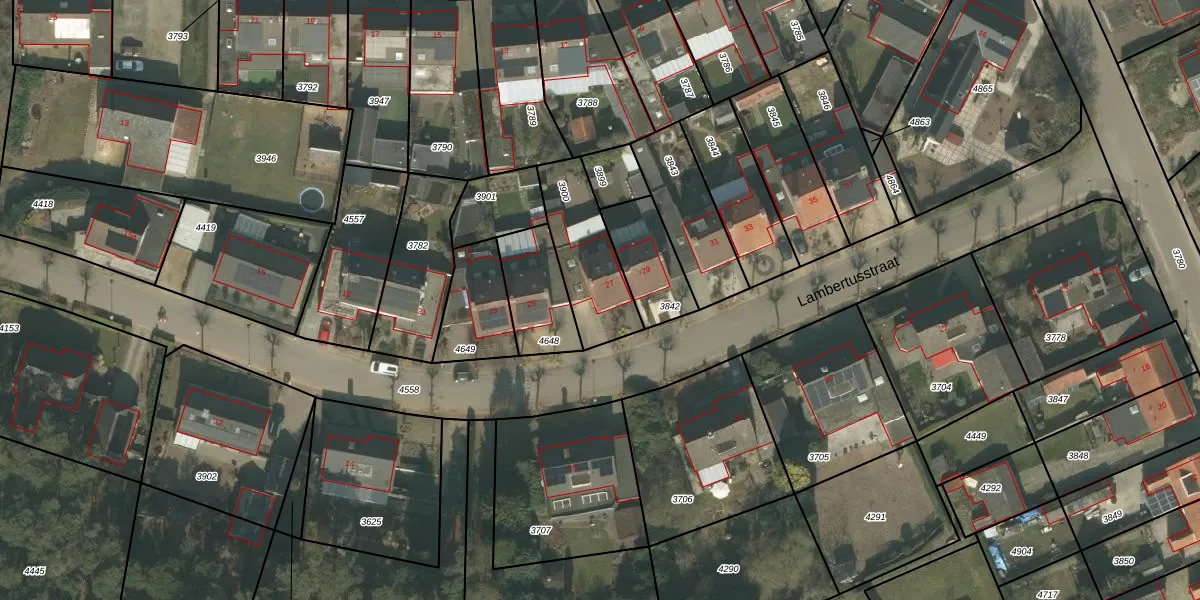 Lambertusstraat 27 is gelegen op kadastraal perceel MLO02B3900. Deze kadastrale aanduiding is uniek en wordt gebruikt door het Kadaster om eigendomsrechten en andere zakelijke rechten vast te leggen. Het perceel maakt onderdeel uit van de kadastrale gemeente Meerlo.