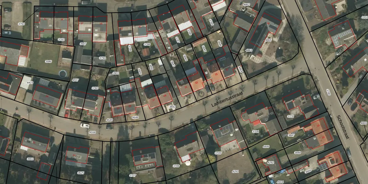 Het perceel waarop Lambertusstraat 31 staat heeft een oppervlakte van 277 m². Dit is een middelgroot perceel. De perceeloppervlakte wordt geregistreerd door het Kadaster. Gedetailleerde informatie over de maten van dit perceel kunt u vinden in het rapport Kadastrale kaart met maatvoering van Lambertusstraat 31.