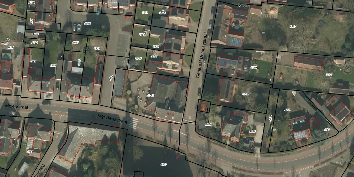 Mgr Aertsstraat 3-a-5 is gelegen op kadastraal perceel MLO02B4791. Deze kadastrale aanduiding is uniek en wordt gebruikt door het Kadaster om eigendomsrechten en andere zakelijke rechten vast te leggen. Het perceel maakt onderdeel uit van de kadastrale gemeente Meerlo.