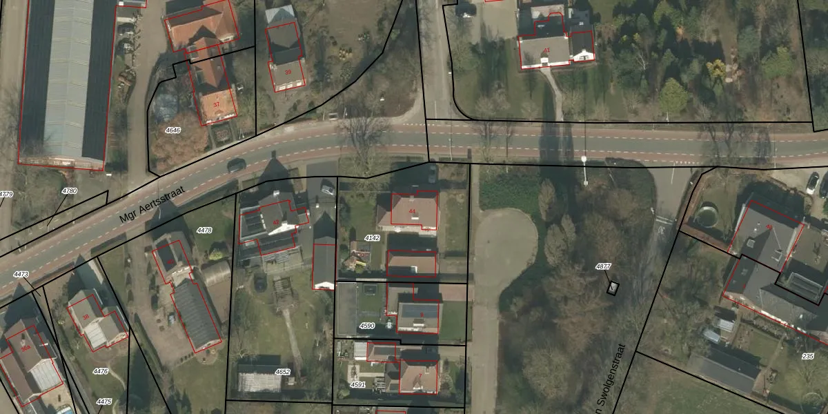 Mgr Aertsstraat 44 is gelegen op kadastraal perceel MLO02B4142. Deze kadastrale aanduiding is uniek en wordt gebruikt door het Kadaster om eigendomsrechten en andere zakelijke rechten vast te leggen. Het perceel maakt onderdeel uit van de kadastrale gemeente Meerlo.