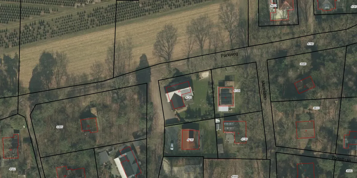 Parkweg 25 is gelegen op kadastraal perceel MLO02B4733. Deze kadastrale aanduiding is uniek en wordt gebruikt door het Kadaster om eigendomsrechten en andere zakelijke rechten vast te leggen. Het perceel maakt onderdeel uit van de kadastrale gemeente Meerlo.