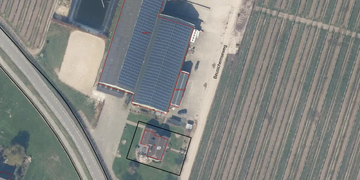 Het perceel waarop Beusichemseweg 28-0002 staat heeft een oppervlakte van 10,9 ha. Dit is een zeer groot perceel. De perceeloppervlakte wordt geregistreerd door het Kadaster. Gedetailleerde informatie over de maten van dit perceel kunt u vinden in het rapport Kadastrale kaart met maatvoering van Beusichemseweg 28-0002.