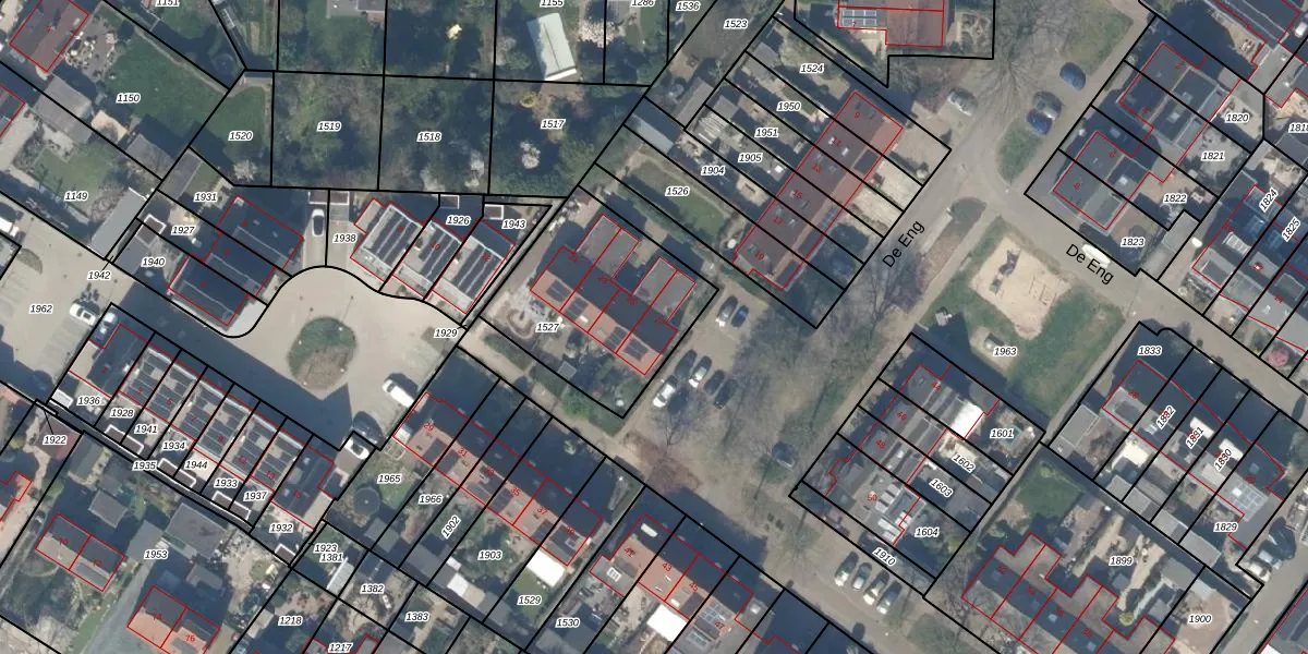 Het perceel waarop De Eng 27 staat heeft een oppervlakte van 703 m². Dit is een groot perceel. De perceeloppervlakte wordt geregistreerd door het Kadaster. Gedetailleerde informatie over de maten van dit perceel kunt u vinden in het rapport Kadastrale kaart met maatvoering van De Eng 27.