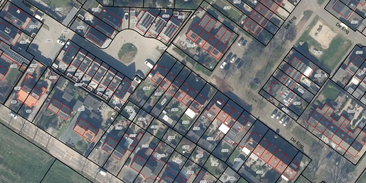 Het perceel waarop De Eng 35 staat heeft een oppervlakte van 330 m². Dit is een groot perceel. De perceeloppervlakte wordt geregistreerd door het Kadaster. Gedetailleerde informatie over de maten van dit perceel kunt u vinden in het rapport Kadastrale kaart met maatvoering van De Eng 35.