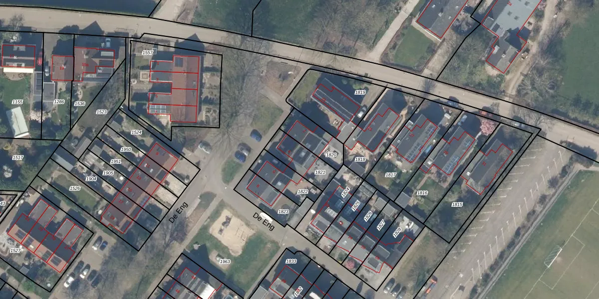 Het perceel waarop De Eng 4 staat heeft een oppervlakte van 206 m². Dit is een middelgroot perceel. De perceeloppervlakte wordt geregistreerd door het Kadaster. Gedetailleerde informatie over de maten van dit perceel kunt u vinden in het rapport Kadastrale kaart met maatvoering van De Eng 4.