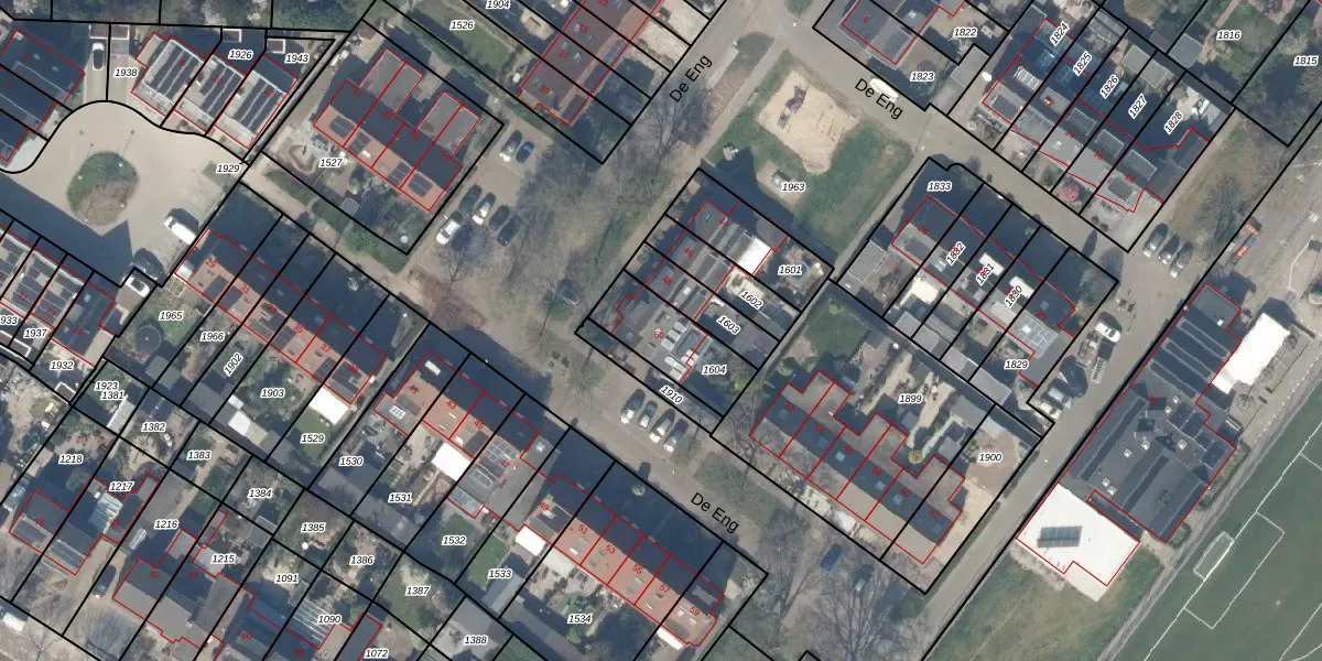De Eng 50 is gelegen op kadastraal perceel HTN04C1604. Deze kadastrale aanduiding is uniek en wordt gebruikt door het Kadaster om eigendomsrechten en andere zakelijke rechten vast te leggen. Het perceel maakt onderdeel uit van de kadastrale gemeente Houten.
