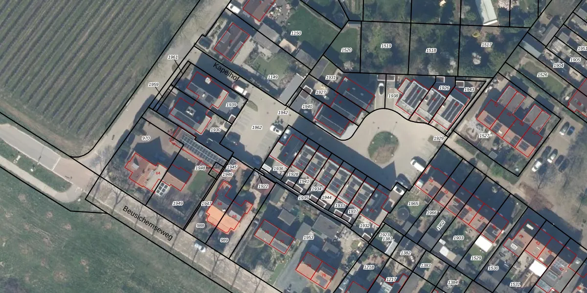 Kapelhof 1 is gelegen op kadastraal perceel HTN04C1936. Deze kadastrale aanduiding is uniek en wordt gebruikt door het Kadaster om eigendomsrechten en andere zakelijke rechten vast te leggen. Het perceel maakt onderdeel uit van de kadastrale gemeente Houten.