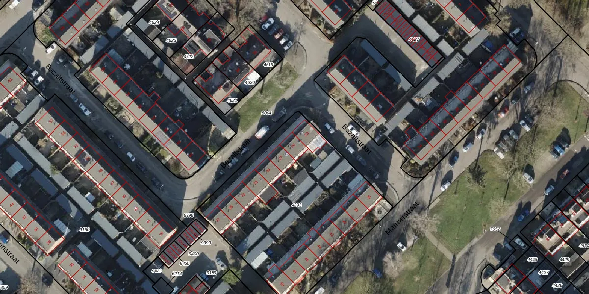Het perceel waarop Bazaltstraat 25 staat heeft een oppervlakte van 2250 m². Dit is een zeer groot perceel. De perceeloppervlakte wordt geregistreerd door het Kadaster. Gedetailleerde informatie over de maten van dit perceel kunt u vinden in het rapport Kadastrale kaart met maatvoering van Bazaltstraat 25.