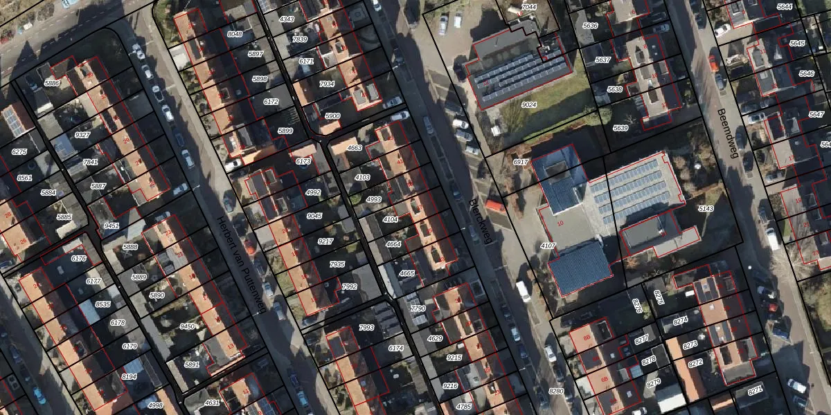 Gebruik de zoekbalk of klik op een perceel voor informatie over de adressen binnen dit perceel.