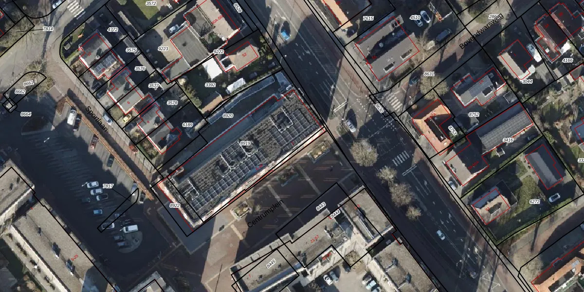 Het perceel waarop Centrumplein 2 staat heeft een oppervlakte van 1300 m². Dit is een zeer groot perceel. De perceeloppervlakte wordt geregistreerd door het Kadaster. Gedetailleerde informatie over de maten van dit perceel kunt u vinden in het rapport Kadastrale kaart met maatvoering van Centrumplein 2.