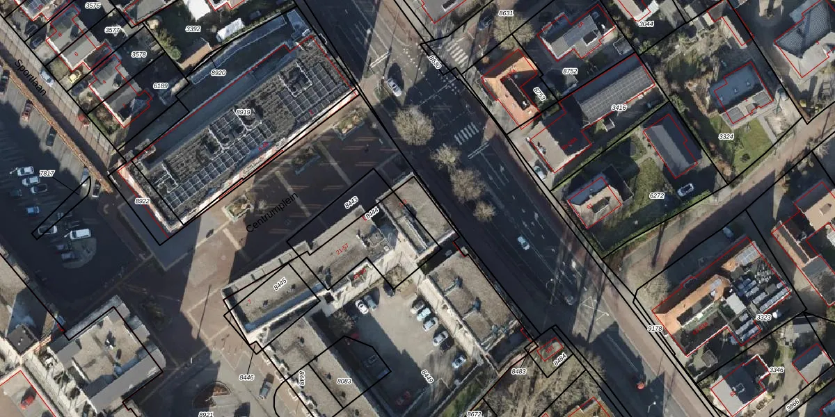 Het perceel waarop Centrumplein 55 staat heeft een oppervlakte van 2045 m². Dit is een zeer groot perceel. De perceeloppervlakte wordt geregistreerd door het Kadaster. Gedetailleerde informatie over de maten van dit perceel kunt u vinden in het rapport Kadastrale kaart met maatvoering van Centrumplein 55.