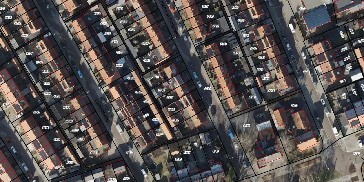 Gebruik de zoekbalk of klik op een perceel voor informatie over de adressen binnen dit perceel.