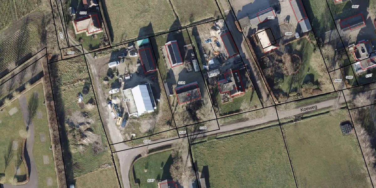 Het perceel waarop Koeweg 14-B staat heeft een oppervlakte van 1075 m². Dit is een zeer groot perceel. De perceeloppervlakte wordt geregistreerd door het Kadaster. Gedetailleerde informatie over de maten van dit perceel kunt u vinden in het rapport Kadastrale kaart met maatvoering van Koeweg 14-B.