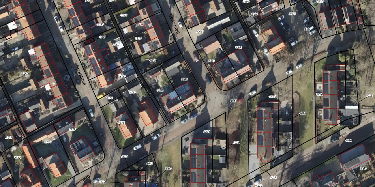 Gebruik de zoekbalk of klik op een perceel voor informatie over de adressen binnen dit perceel.