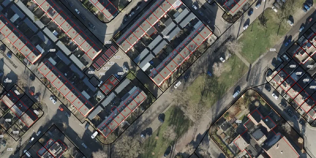 Het perceel waarop Marmerstraat 50 staat heeft een oppervlakte van 2250 m². Dit is een zeer groot perceel. De perceeloppervlakte wordt geregistreerd door het Kadaster. Gedetailleerde informatie over de maten van dit perceel kunt u vinden in het rapport Kadastrale kaart met maatvoering van Marmerstraat 50.