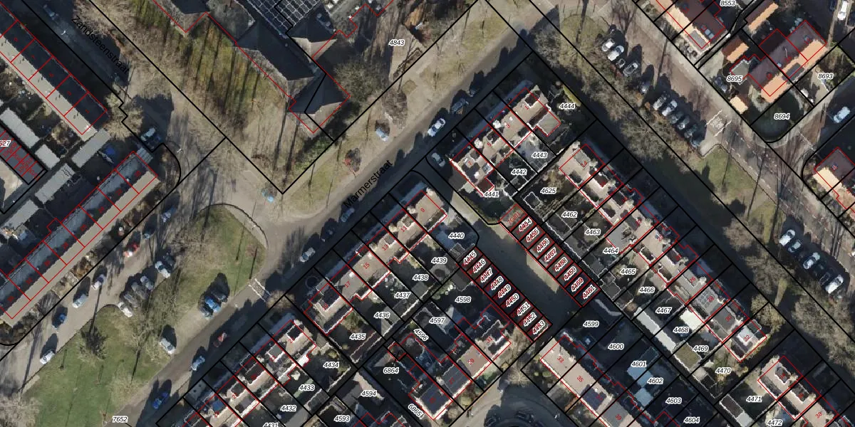 Gebruik de zoekbalk of klik op een perceel voor informatie over de adressen binnen dit perceel.