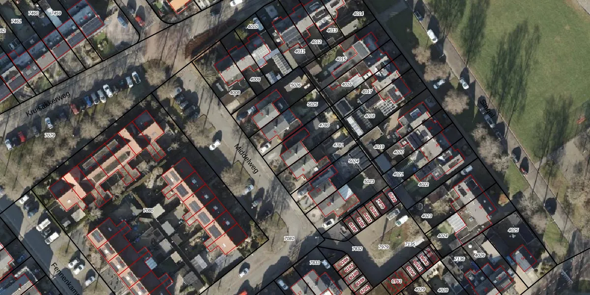 Het perceel waarop Middelweg 7 staat heeft een oppervlakte van 227 m². Dit is een middelgroot perceel. De perceeloppervlakte wordt geregistreerd door het Kadaster. Gedetailleerde informatie over de maten van dit perceel kunt u vinden in het rapport Kadastrale kaart met maatvoering van Middelweg 7.
