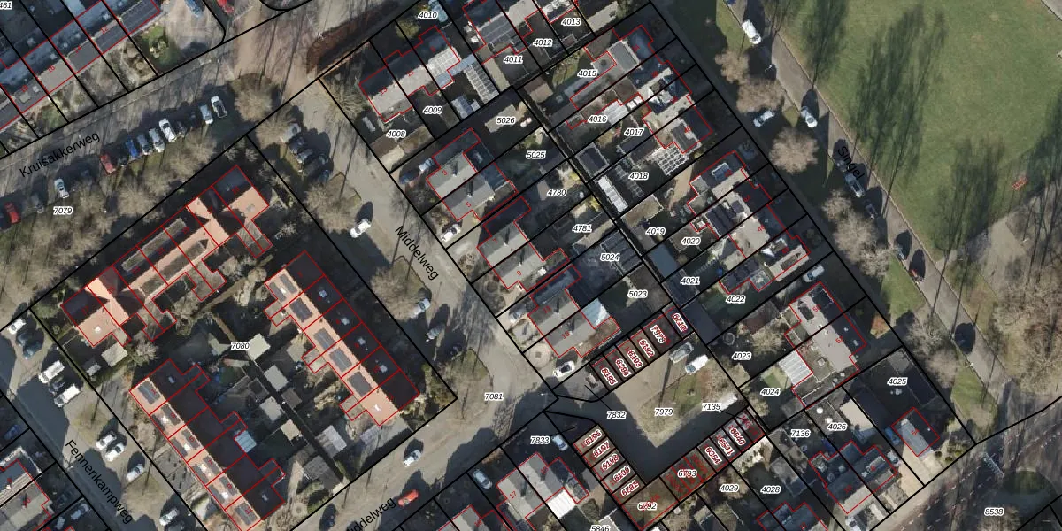 Het perceel waarop Middelweg 9 staat heeft een oppervlakte van 228 m². Dit is een middelgroot perceel. De perceeloppervlakte wordt geregistreerd door het Kadaster. Gedetailleerde informatie over de maten van dit perceel kunt u vinden in het rapport Kadastrale kaart met maatvoering van Middelweg 9.