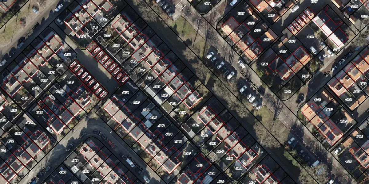 Gebruik de zoekbalk of klik op een perceel voor informatie over de adressen binnen dit perceel.