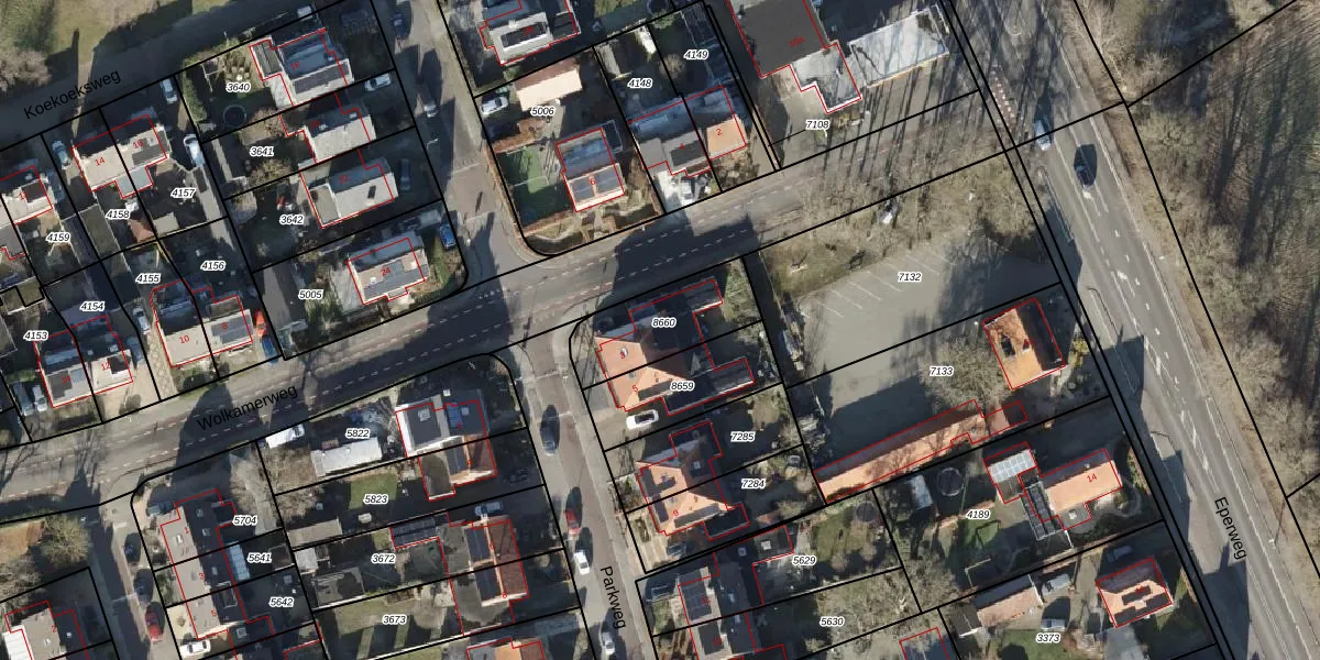 Gebruik de zoekbalk of klik op een perceel voor informatie over de adressen binnen dit perceel.