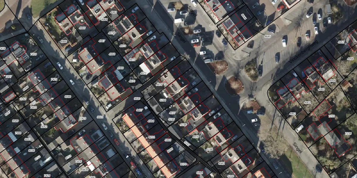 Gebruik de zoekbalk of klik op een perceel voor informatie over de adressen binnen dit perceel.