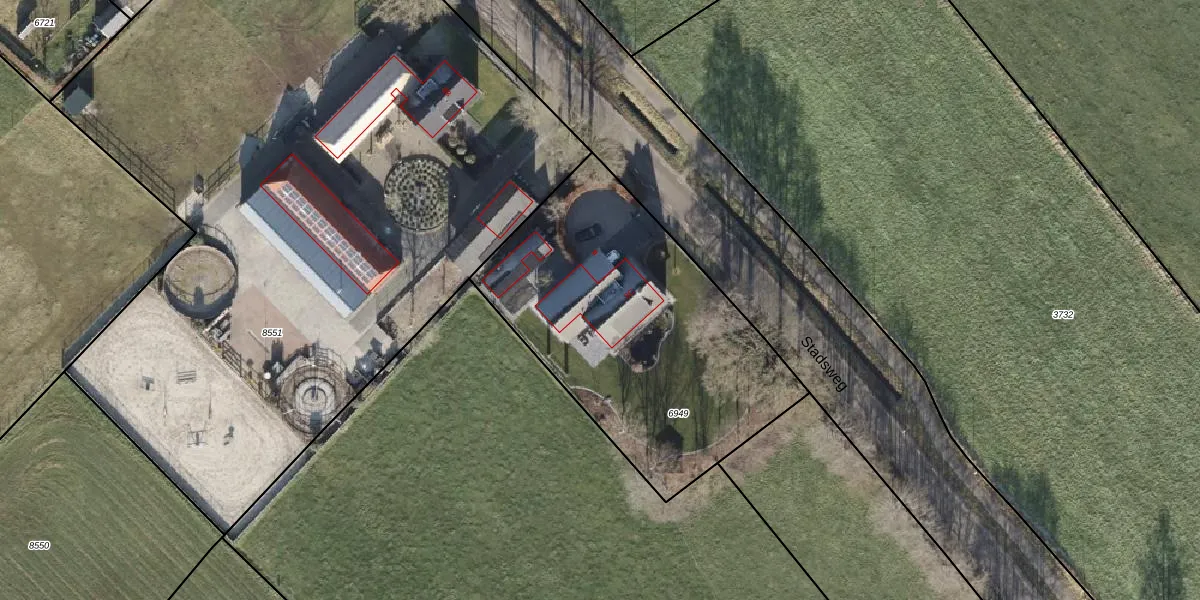 Het perceel waarop Stadsweg 8-C staat heeft een oppervlakte van 1525 m². Dit is een zeer groot perceel. De perceeloppervlakte wordt geregistreerd door het Kadaster. Gedetailleerde informatie over de maten van dit perceel kunt u vinden in het rapport Kadastrale kaart met maatvoering van Stadsweg 8-C.