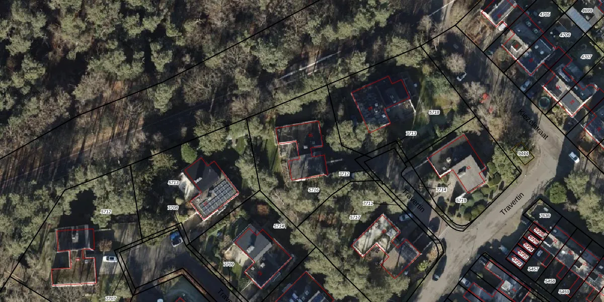 Het perceel waarop Travertin 35 staat heeft een oppervlakte van 1090 m². Dit is een zeer groot perceel. De perceeloppervlakte wordt geregistreerd door het Kadaster. Gedetailleerde informatie over de maten van dit perceel kunt u vinden in het rapport Kadastrale kaart met maatvoering van Travertin 35.