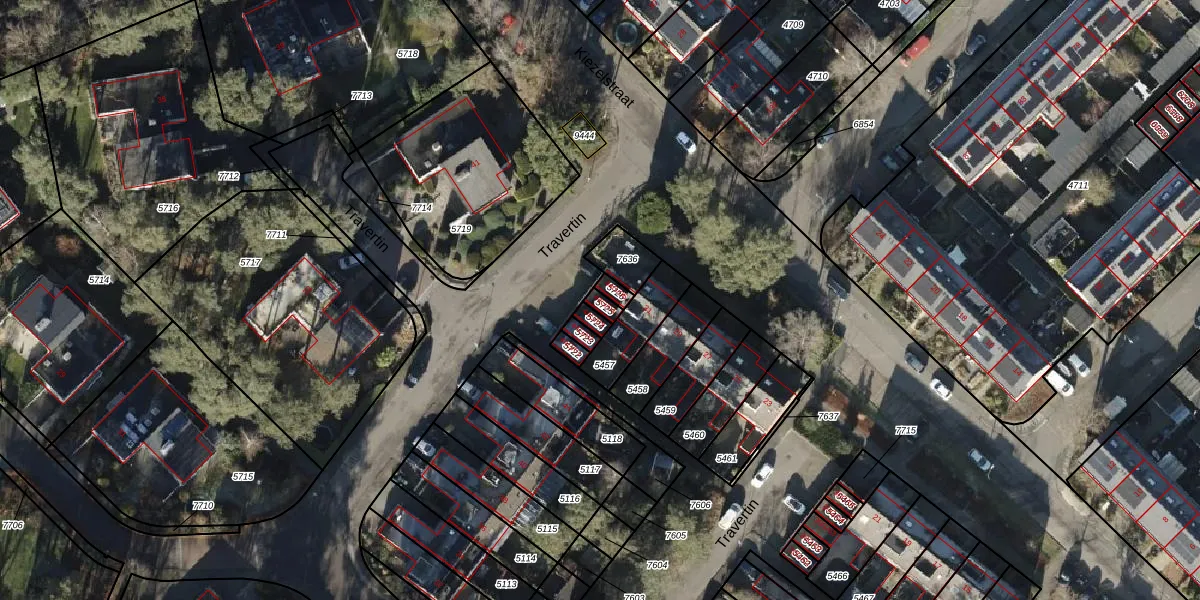 Het perceel waarop Travertin 44-G-04 staat heeft een oppervlakte van 18 m². Dit is een klein perceel. De perceeloppervlakte wordt geregistreerd door het Kadaster. Gedetailleerde informatie over de maten van dit perceel kunt u vinden in het rapport Kadastrale kaart met maatvoering van Travertin 44-G-04.
