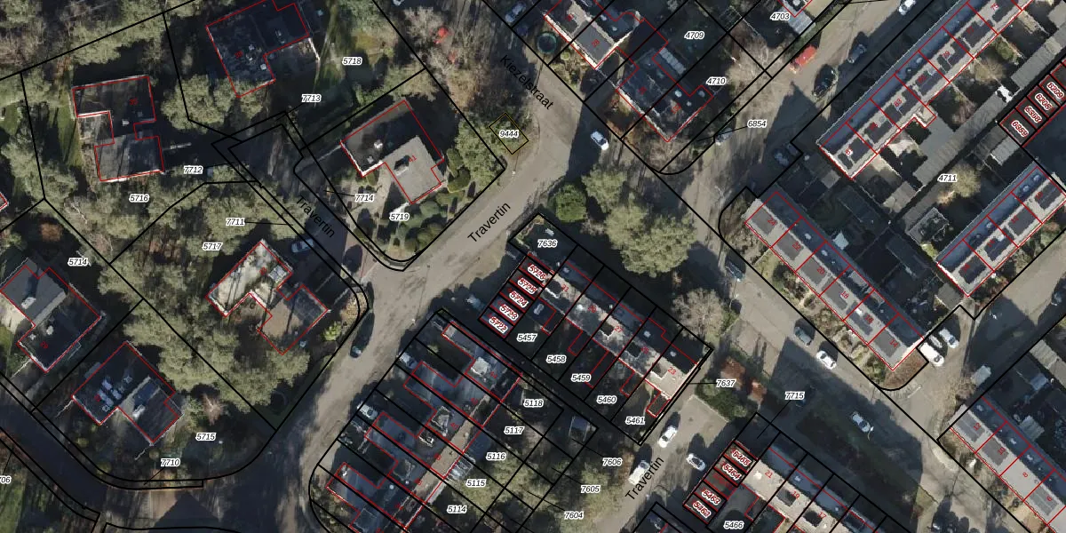 Het perceel waarop Travertin 44-G-05 staat heeft een oppervlakte van 19 m². Dit is een klein perceel. De perceeloppervlakte wordt geregistreerd door het Kadaster. Gedetailleerde informatie over de maten van dit perceel kunt u vinden in het rapport Kadastrale kaart met maatvoering van Travertin 44-G-05.