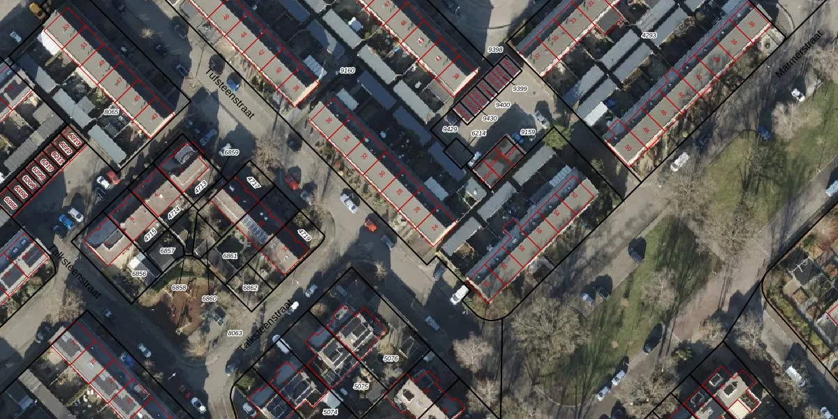 Het perceel waarop Tufsteenstraat 26 staat heeft een oppervlakte van 5280 m². Dit is een zeer groot perceel. De perceeloppervlakte wordt geregistreerd door het Kadaster. Gedetailleerde informatie over de maten van dit perceel kunt u vinden in het rapport Kadastrale kaart met maatvoering van Tufsteenstraat 26.
