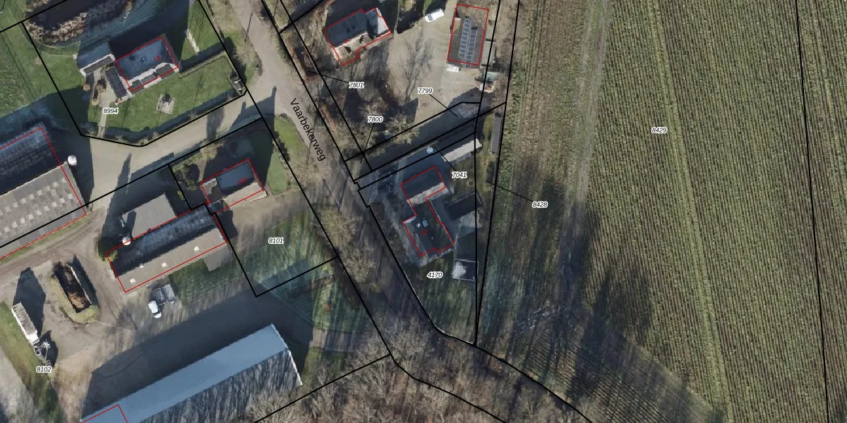 Vaarbekerweg 13 is gelegen op kadastraal perceel DSK00E4170. Deze kadastrale aanduiding is uniek en wordt gebruikt door het Kadaster om eigendomsrechten en andere zakelijke rechten vast te leggen. Het perceel maakt onderdeel uit van de kadastrale gemeente Doornspijk.