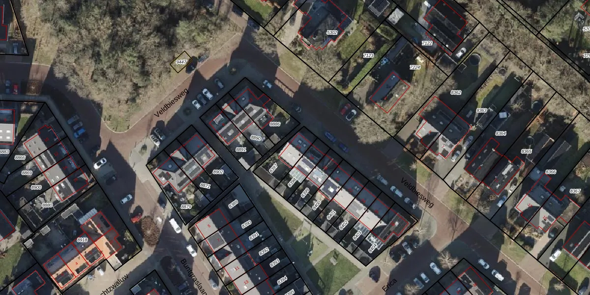 Het perceel waarop Veldbiesweg 14 staat heeft een oppervlakte van 180 m². Dit is een middelgroot perceel. De perceeloppervlakte wordt geregistreerd door het Kadaster. Gedetailleerde informatie over de maten van dit perceel kunt u vinden in het rapport Kadastrale kaart met maatvoering van Veldbiesweg 14.