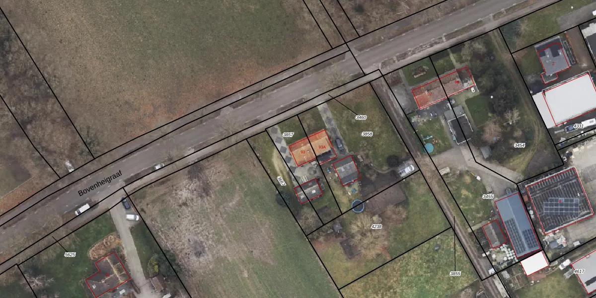 Bovenheigraaf 93 is gelegen op kadastraal perceel ODB01F3857. Deze kadastrale aanduiding is uniek en wordt gebruikt door het Kadaster om eigendomsrechten en andere zakelijke rechten vast te leggen. Het perceel maakt onderdeel uit van de kadastrale gemeente Oldebroek.