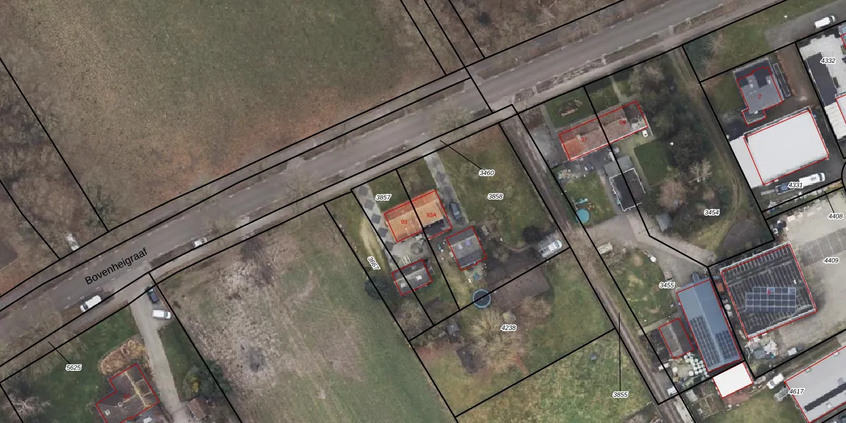 Bovenheigraaf 93-A is gelegen op kadastraal perceel ODB01F3858. Deze kadastrale aanduiding is uniek en wordt gebruikt door het Kadaster om eigendomsrechten en andere zakelijke rechten vast te leggen. Het perceel maakt onderdeel uit van de kadastrale gemeente Oldebroek.