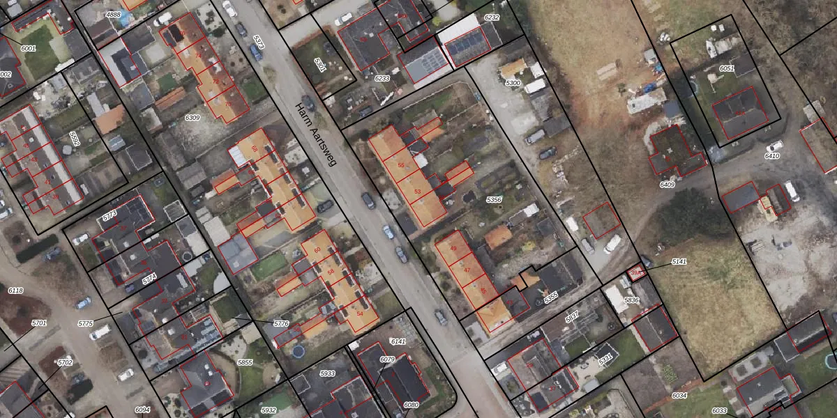 Harm Aartsweg 51 is gelegen op kadastraal perceel ODB01L5356. Deze kadastrale aanduiding is uniek en wordt gebruikt door het Kadaster om eigendomsrechten en andere zakelijke rechten vast te leggen. Het perceel maakt onderdeel uit van de kadastrale gemeente Oldebroek.
