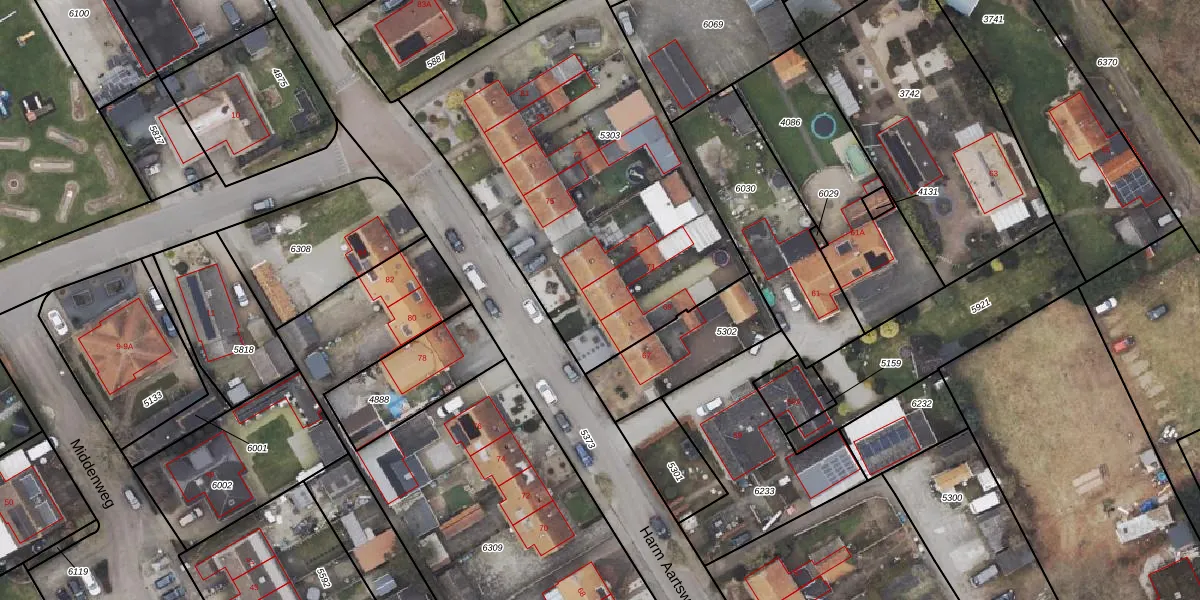 Harm Aartsweg 71 is gelegen op kadastraal perceel ODB01L5303. Deze kadastrale aanduiding is uniek en wordt gebruikt door het Kadaster om eigendomsrechten en andere zakelijke rechten vast te leggen. Het perceel maakt onderdeel uit van de kadastrale gemeente Oldebroek.