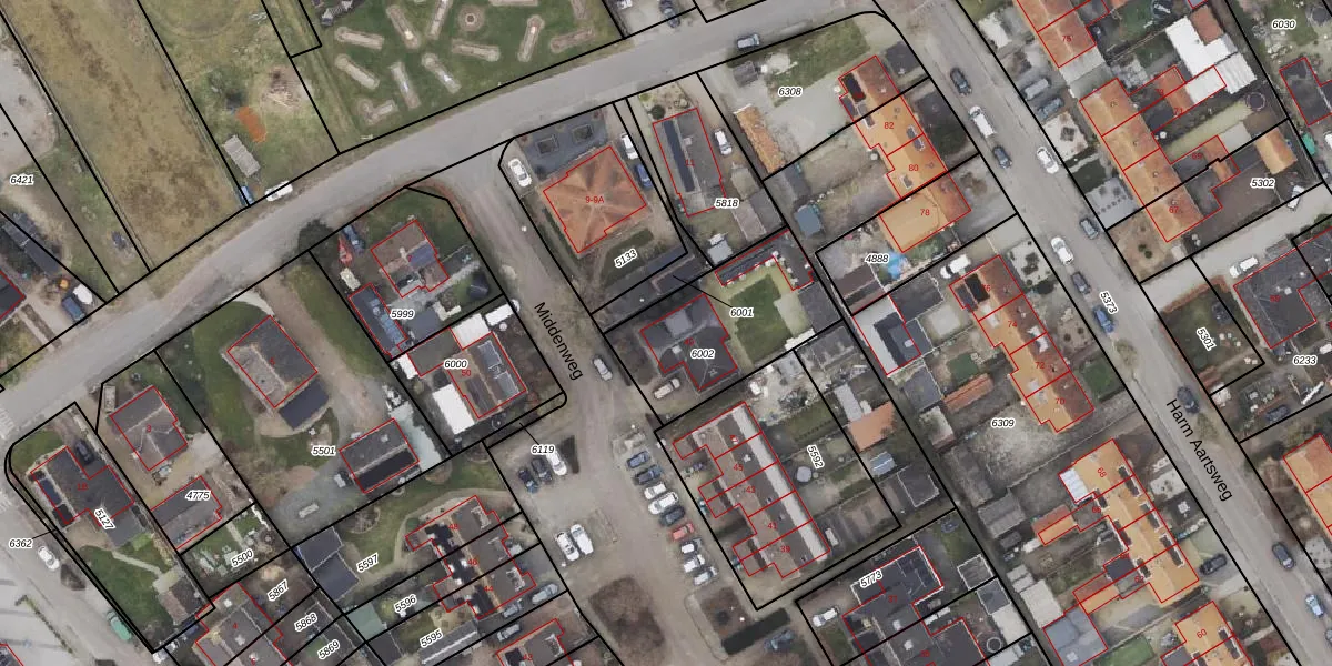 Gebruik de zoekbalk of klik op een perceel voor informatie over de adressen binnen dit perceel.