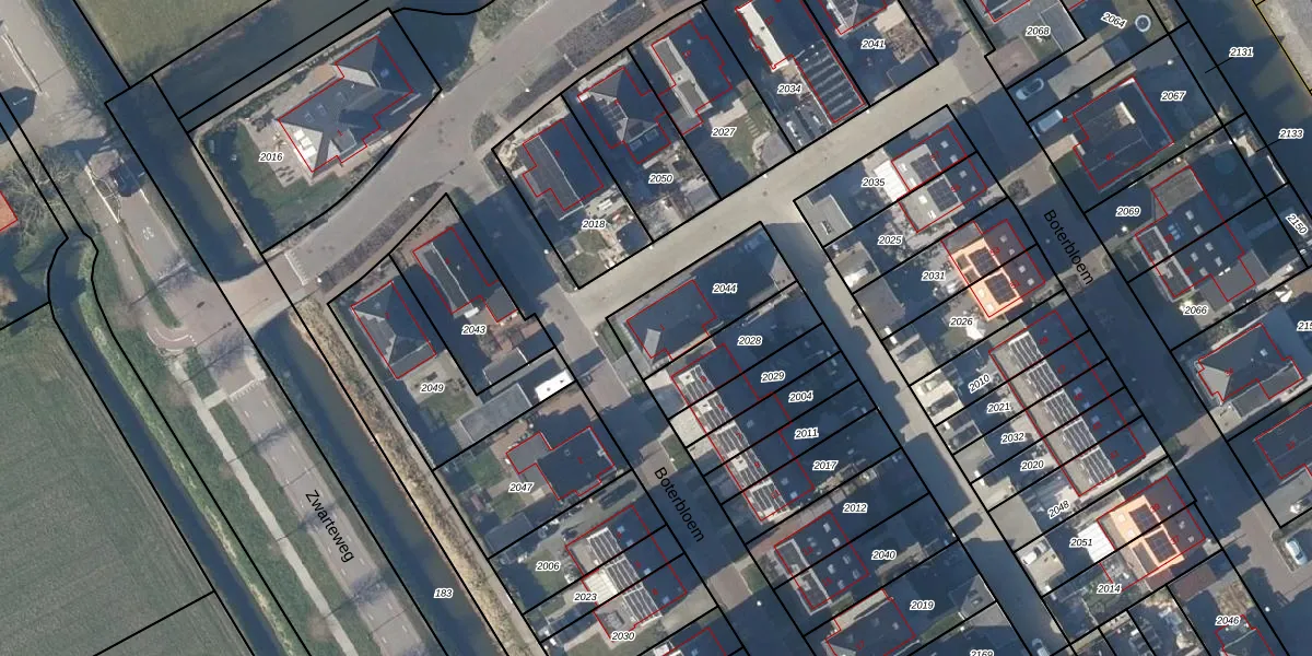 Boterbloem 1 is gelegen op kadastraal perceel NDP02E2044. Deze kadastrale aanduiding is uniek en wordt gebruikt door het Kadaster om eigendomsrechten en andere zakelijke rechten vast te leggen. Het perceel maakt onderdeel uit van de kadastrale gemeente Niedorp.