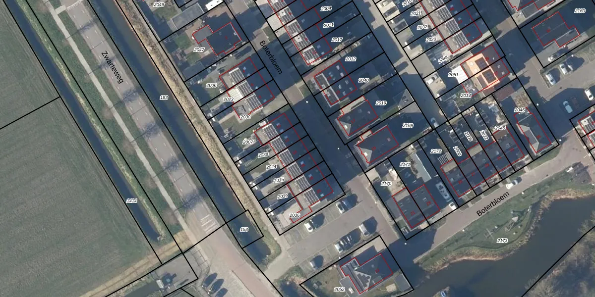 Boterbloem 14 is gelegen op kadastraal perceel NDP02E2024. Deze kadastrale aanduiding is uniek en wordt gebruikt door het Kadaster om eigendomsrechten en andere zakelijke rechten vast te leggen. Het perceel maakt onderdeel uit van de kadastrale gemeente Niedorp.