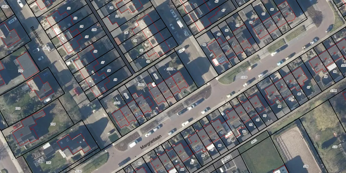 Het perceel waarop Margrietlaan 13 staat heeft een oppervlakte van 368 m². Dit is een groot perceel. De perceeloppervlakte wordt geregistreerd door het Kadaster. Gedetailleerde informatie over de maten van dit perceel kunt u vinden in het rapport Kadastrale kaart met maatvoering van Margrietlaan 13.