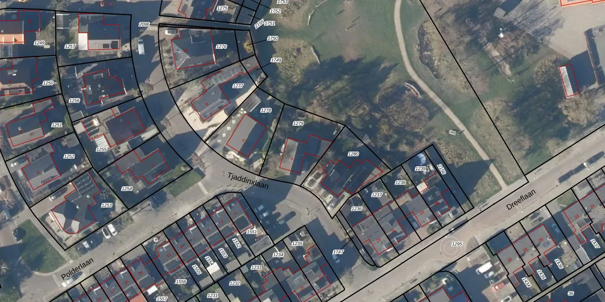Tjaddinxlaan 4 is gelegen op kadastraal perceel NDP02E1279. Deze kadastrale aanduiding is uniek en wordt gebruikt door het Kadaster om eigendomsrechten en andere zakelijke rechten vast te leggen. Het perceel maakt onderdeel uit van de kadastrale gemeente Niedorp.