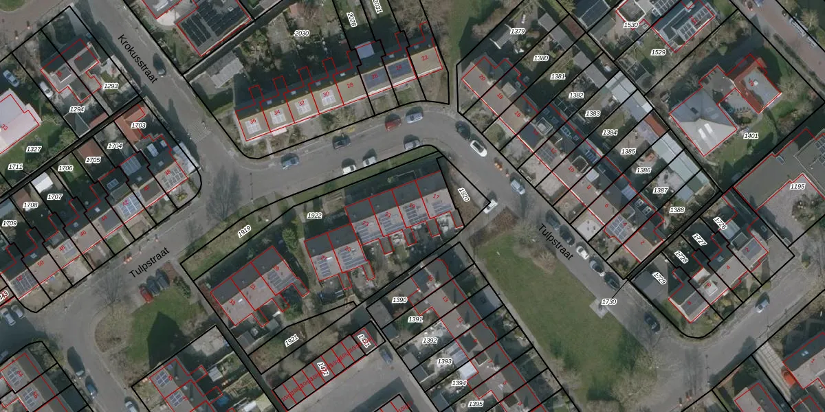 Het perceel waarop Tulpstraat 19 staat heeft een oppervlakte van 1543 m². Dit is een zeer groot perceel. De perceeloppervlakte wordt geregistreerd door het Kadaster. Gedetailleerde informatie over de maten van dit perceel kunt u vinden in het rapport Kadastrale kaart met maatvoering van Tulpstraat 19.