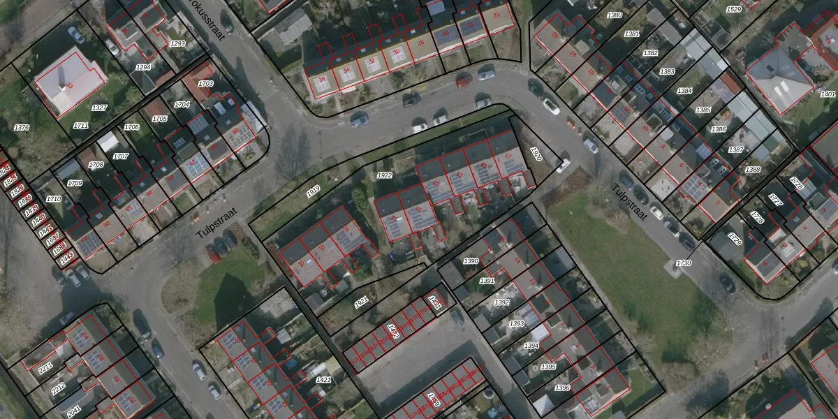 Het perceel waarop Tulpstraat 25 staat heeft een oppervlakte van 1543 m². Dit is een zeer groot perceel. De perceeloppervlakte wordt geregistreerd door het Kadaster. Gedetailleerde informatie over de maten van dit perceel kunt u vinden in het rapport Kadastrale kaart met maatvoering van Tulpstraat 25.