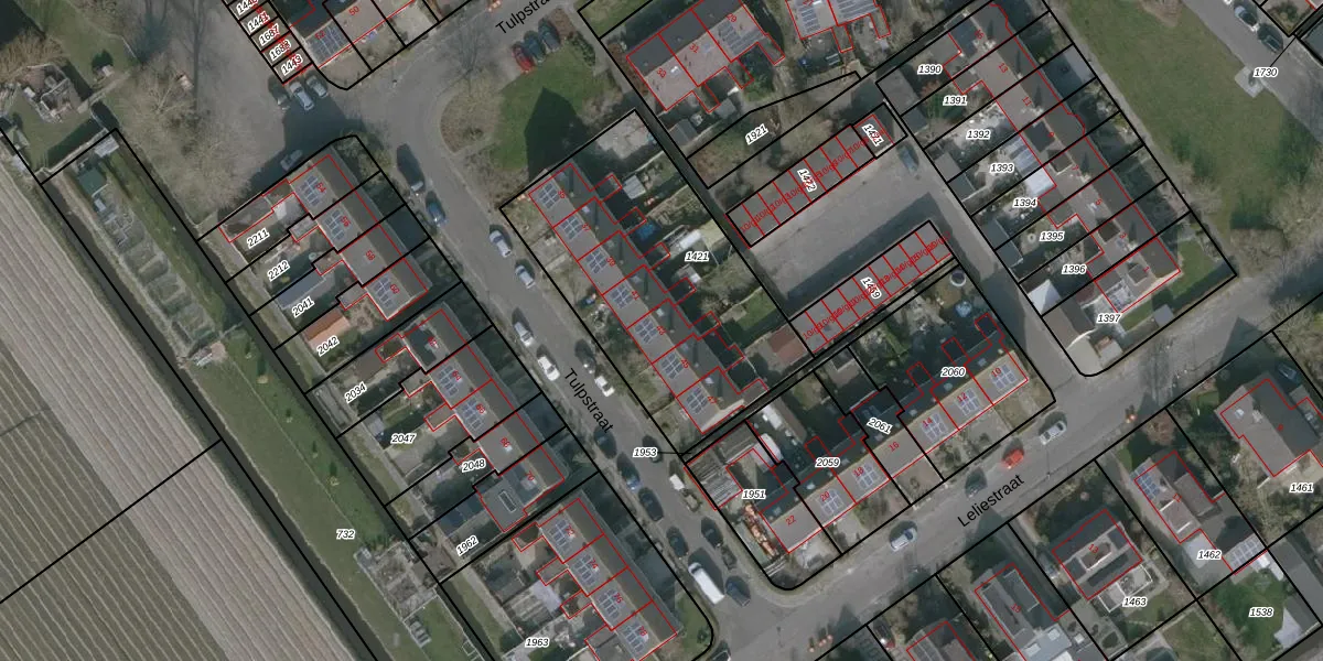 Het perceel waarop Tulpstraat 43 staat heeft een oppervlakte van 1182 m². Dit is een zeer groot perceel. De perceeloppervlakte wordt geregistreerd door het Kadaster. Gedetailleerde informatie over de maten van dit perceel kunt u vinden in het rapport Kadastrale kaart met maatvoering van Tulpstraat 43.
